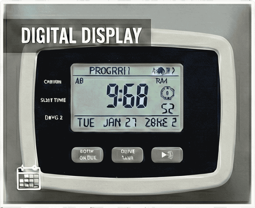 Shows the current time, watering day schedule, and programming information. Modern controllers have LCD screens, while older ones may have mechanical dials.