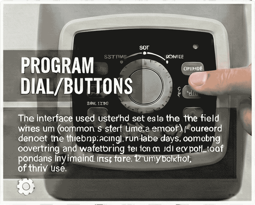 Used to cycle through programming settings like run times, start times, and watering days. Buttons are used to adjust the values for each setting.