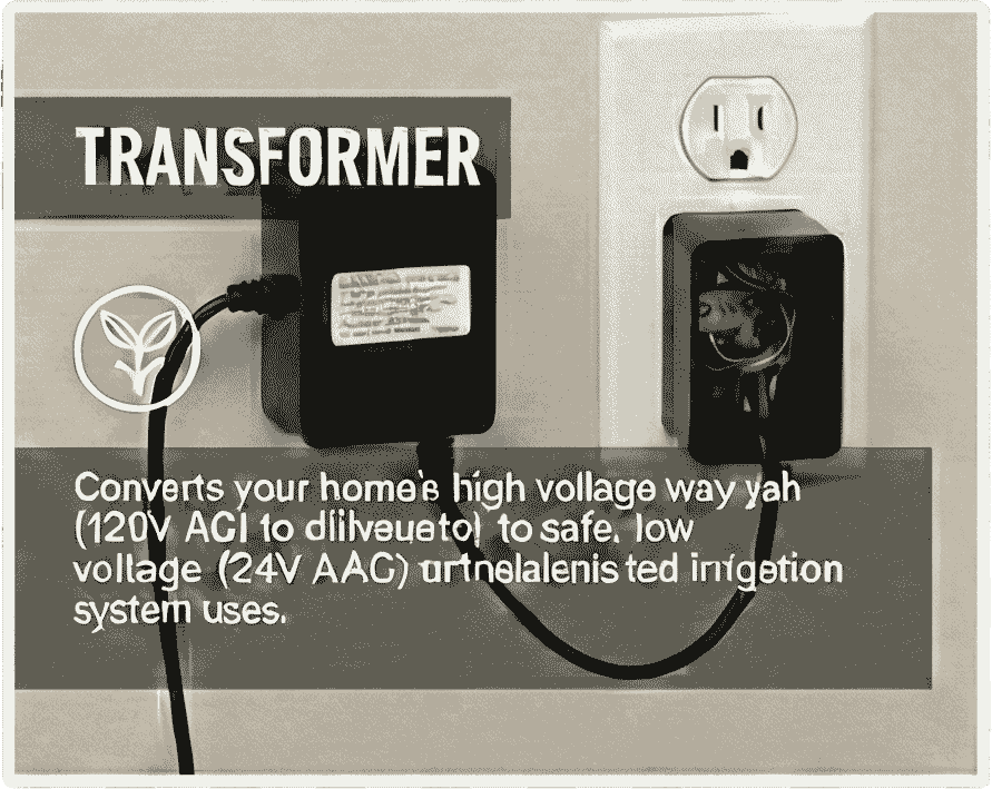 Converts high-voltage AC power from your outlet to low-voltage power (usually 24VAC) that the irrigation valves can safely use.